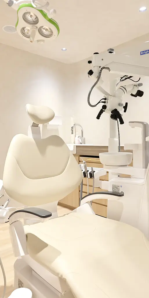 ・精密な治療を行なうための歯科用顕微鏡であり、焦点の合う範囲が狭いため、立体的な観察機器としては必ずしも適しません。治療内容によっては使用しない場合があります。